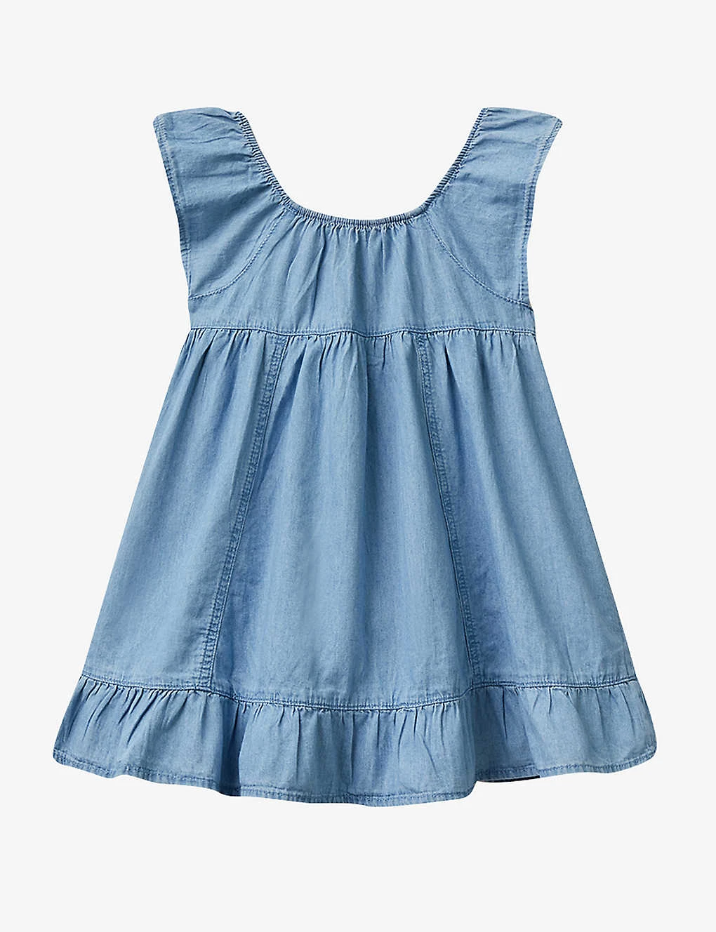 Benetton Frilled-hem Shirred-back Cotton-chambray Mini Dress 1-6 Years
