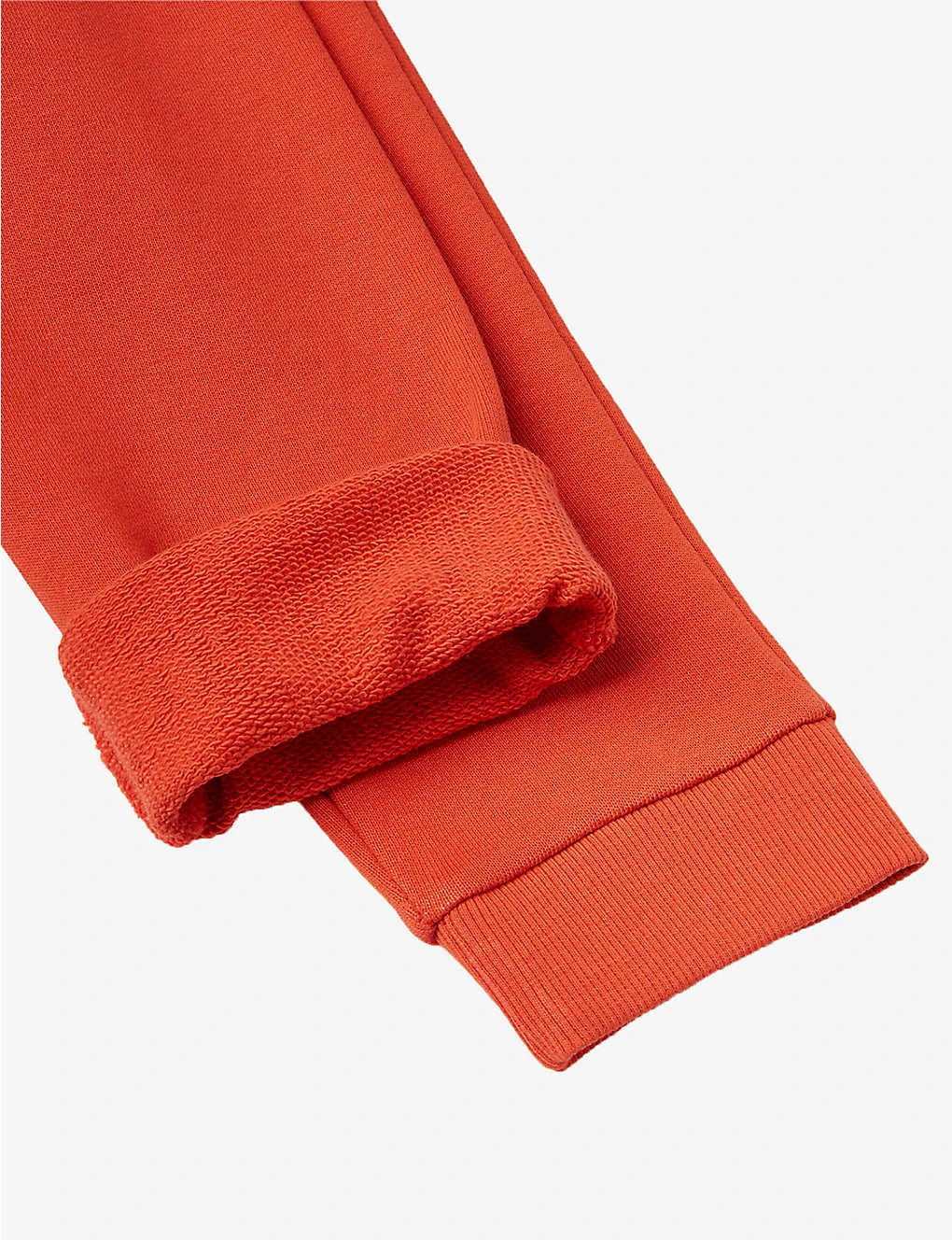 - Elasticated drawstring waistband, two slip pockets at sides, one patch pocket at back, printed logo at back, cuffed hem