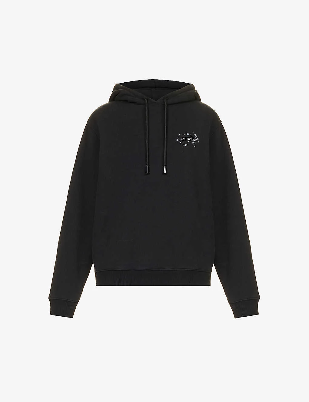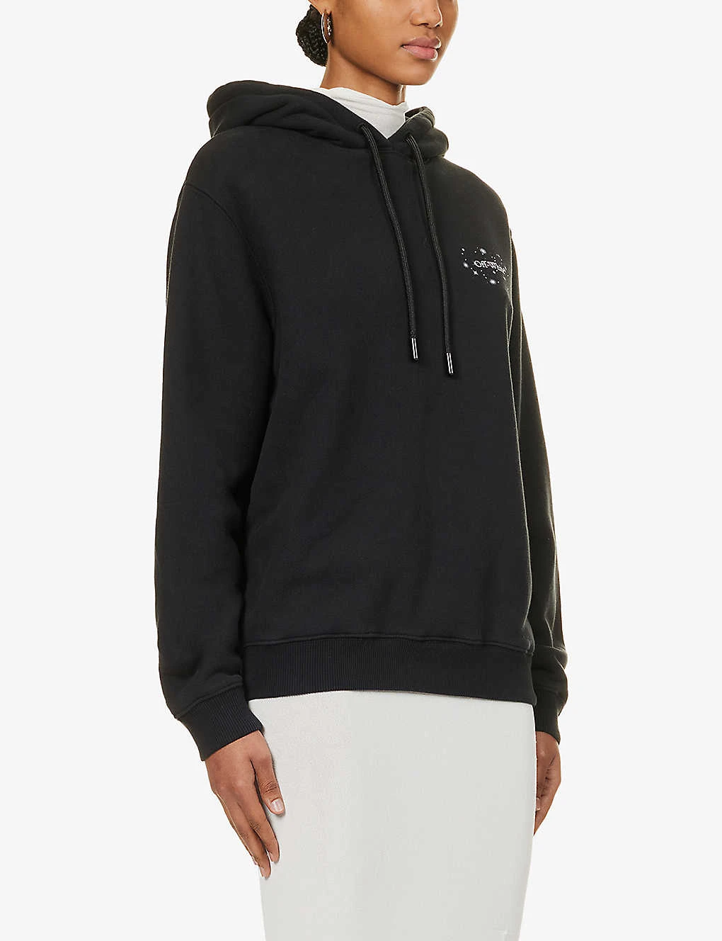 - Regular fit, drawstring hood, long sleeves, brand text print with rhinestones at chest, celestial print with rhinestones at back, ribbed trims
