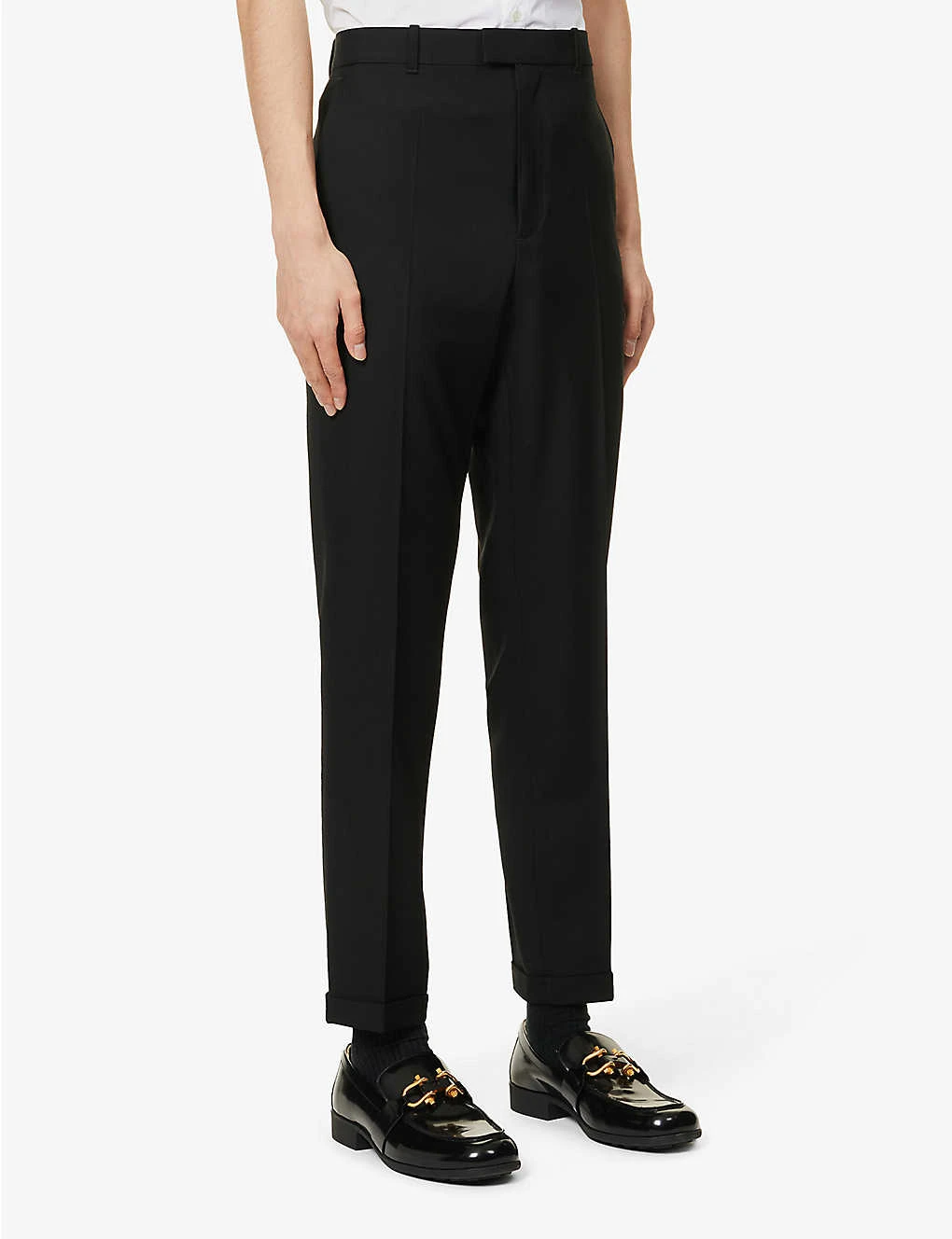 - Concealed button, hook-and-eye and zip-fly fastening at front
