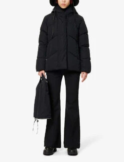 - Hooded, long sleeves, elasticated cuffs, twin zip pockets, all-over quilted, embroidered logo at arm, reflective stripes at hood