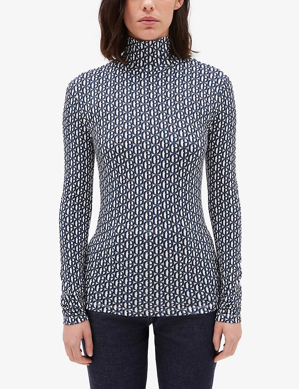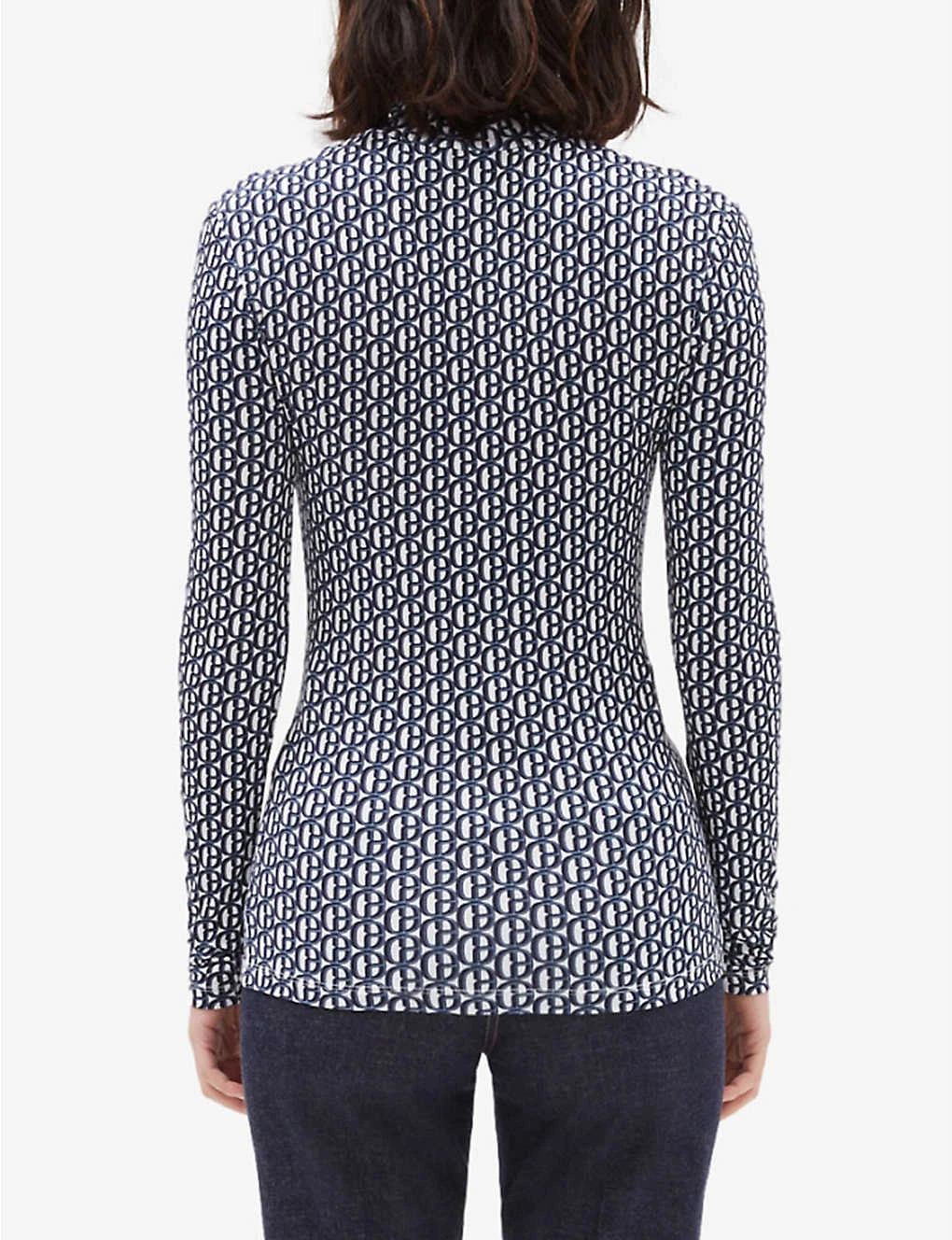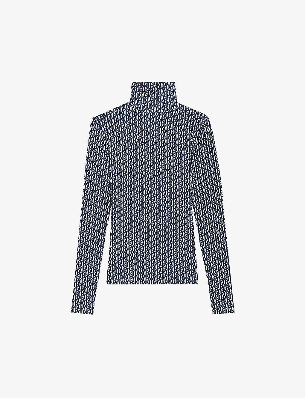 - Funnel neck, long sleeves, fitted silhouette, all-over logo-print