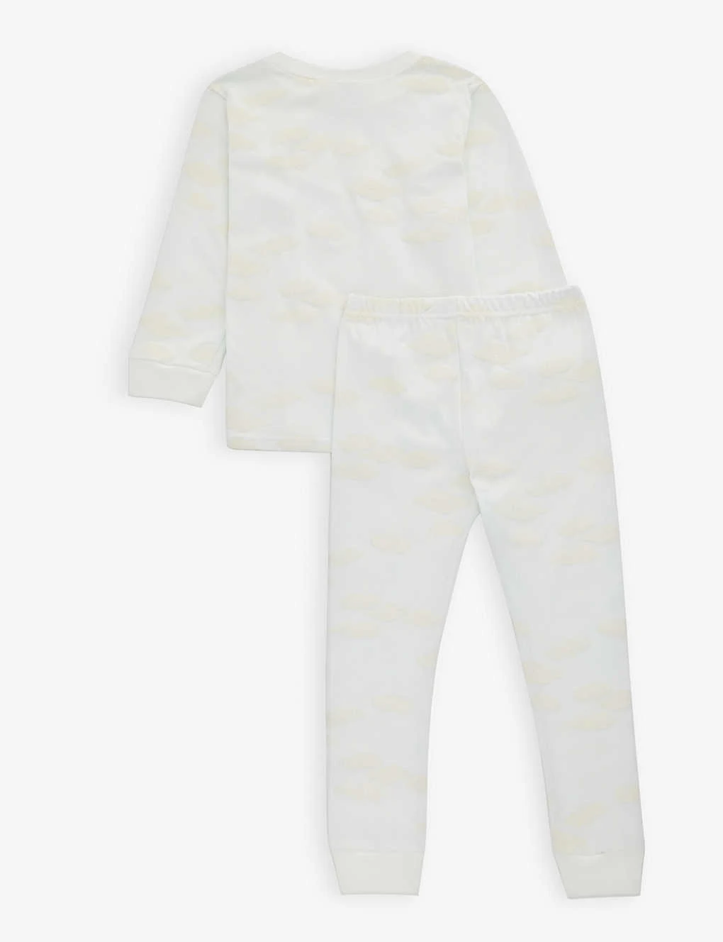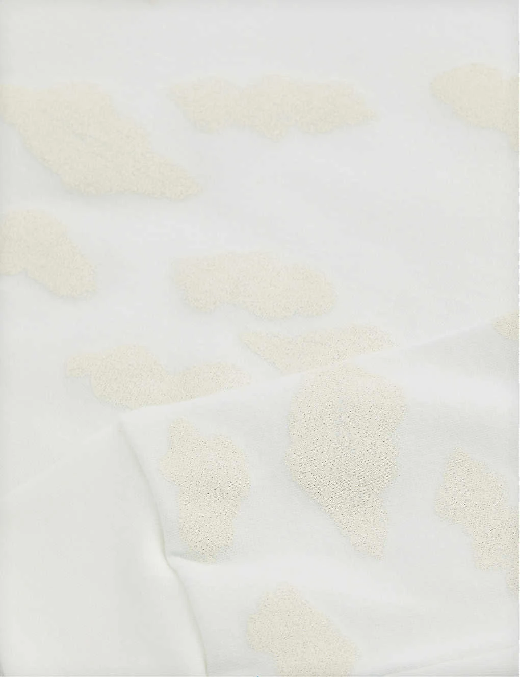 - Top: regular fit, round neck, long sleeves, elasticated cuffs, all over cloud flocked-print, straight hem