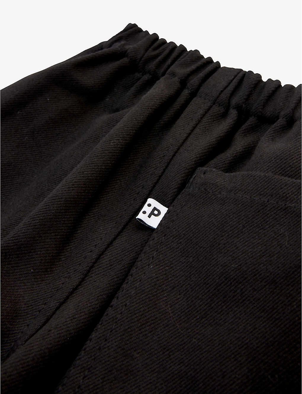 - Mid-rise, wide leg, elasticated waistband, two slip pockets at front, one patch pocket at back, brand tab at back