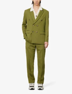 - Mid length, long sleeves, logo embroidered onto the chest, contrasting trim running down the front, belt loops, self-tie fastening, two patch pockets across the front, V-neck, straight hem