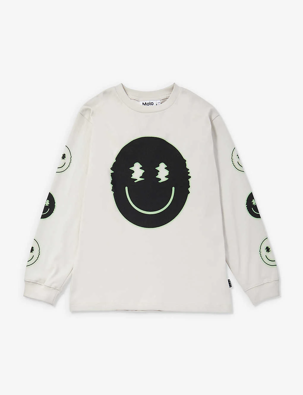 - Regular fit, crewneck, long sleeves, graphic smiley at front, ribbed trims