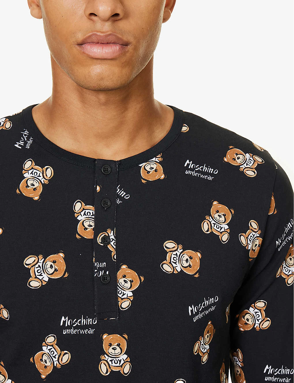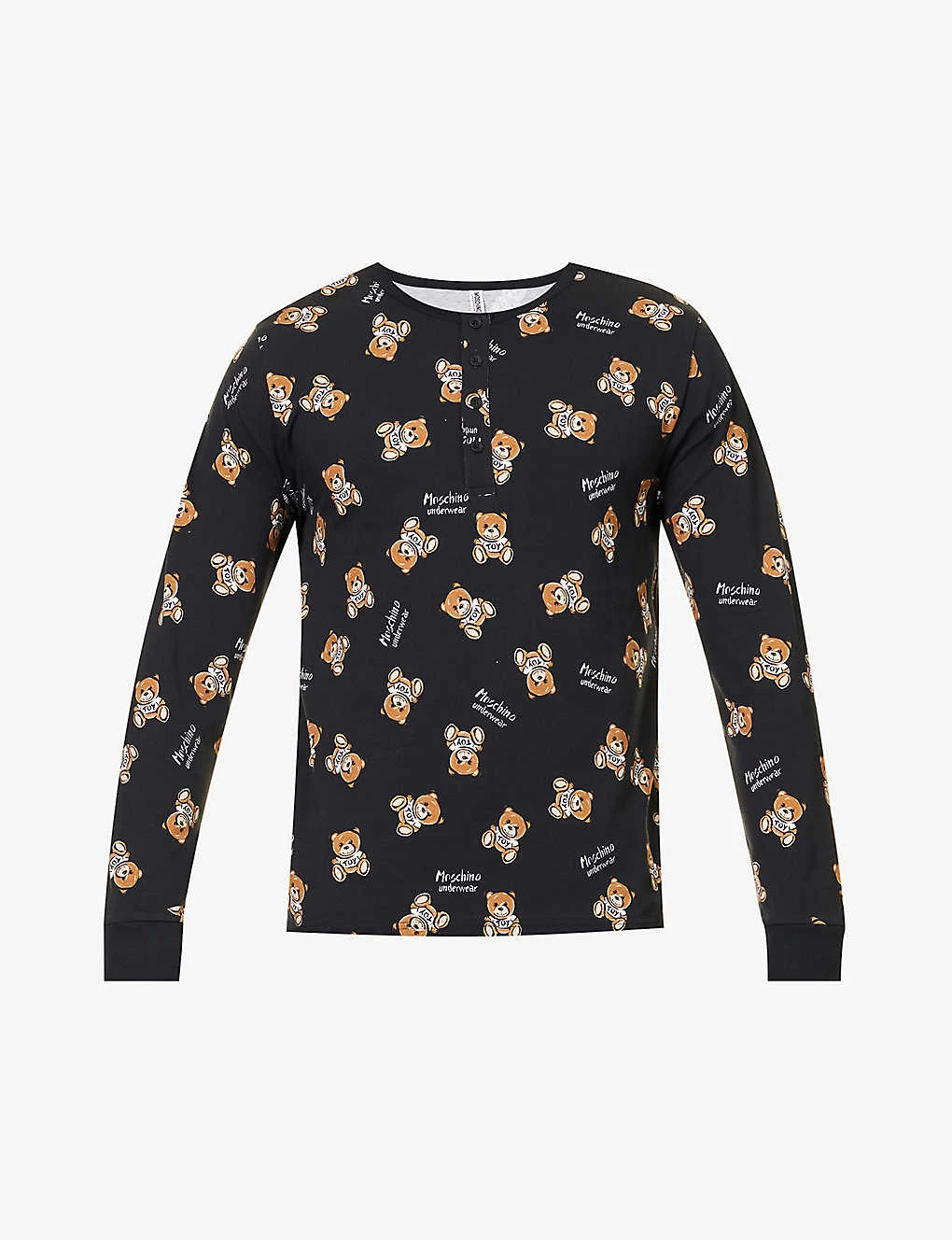 - Regular fit, crewneck, long sleeves, half button-down at front, all-over graphic brand print, branded buttons, ribbed trims