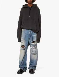 - Oversized fit, crewneck, dropped shoulders, long sleeves, embroidered branding and print at chest, ribbed trims