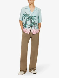 Palm Angels Sartorial Tape Branded-waistband Straight-leg Relaxed-fit Cotton-twill Chino Trousers