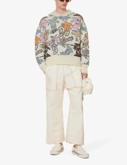 - Oversized fit, dropped shoulders, long sleeves, embroidered branding at chest, all-over striped pattern, contrast trims