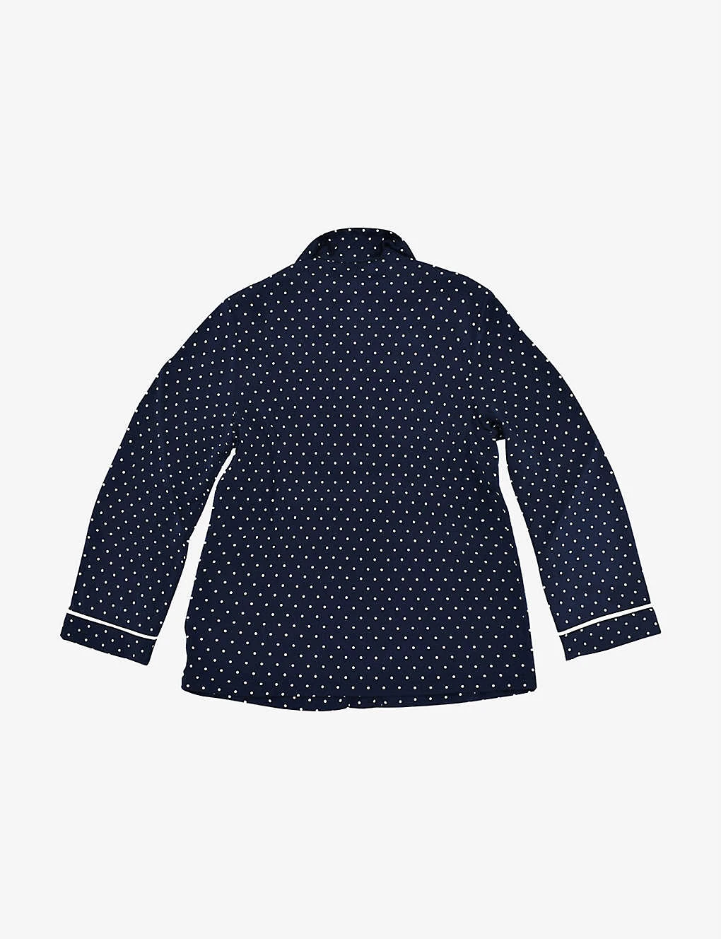 - Relaxed fit, camp collar, logo-branded slip pockets trimmed edges, all-over polka dot print