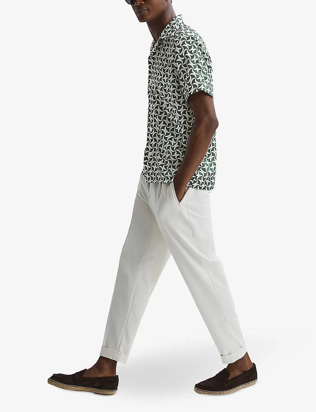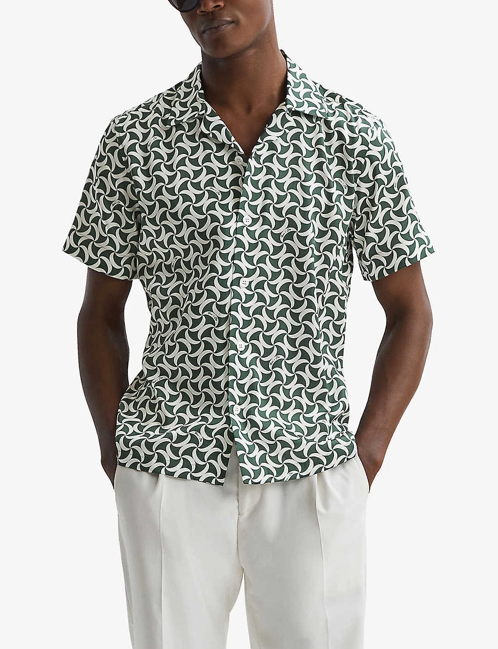 - Regular-fit, cuban collar, short sleeves, all-over abstract print, straight hem