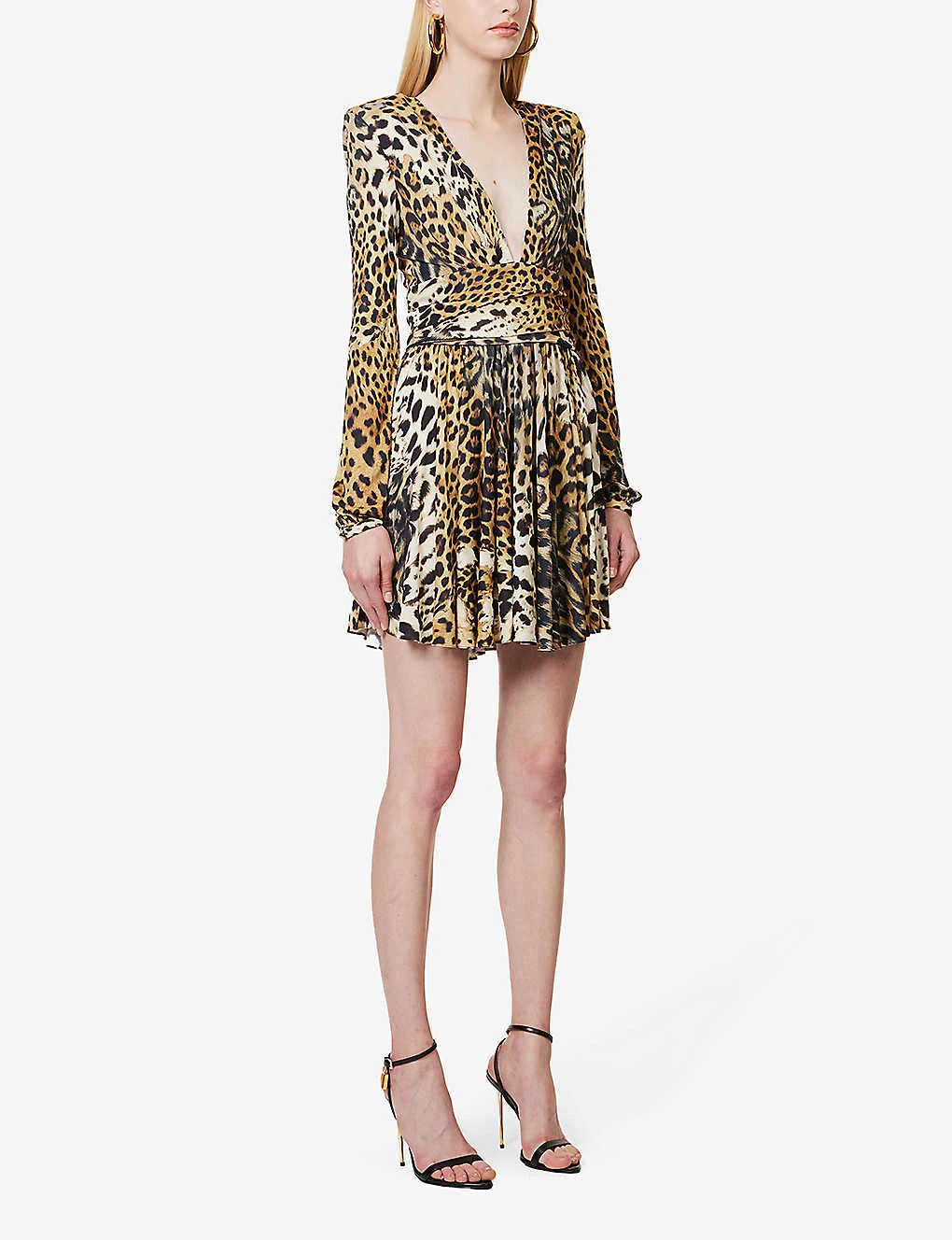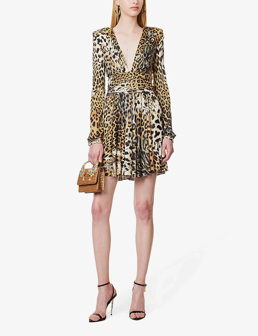 Be the first to review “Roberto Cavalli Leopard-print V-neck Woven Mini Dress” Cancel reply