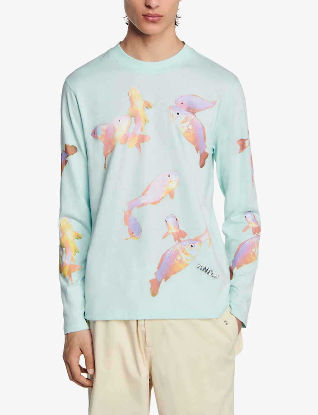 Be the first to review “Sandro Goldfish-print Long-sleeve Cotton T-shirt” Cancel reply