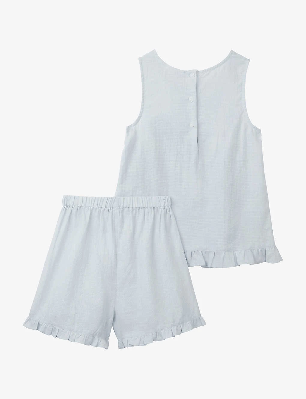 - Shorts: elasticated waist, frill-detail at the hem