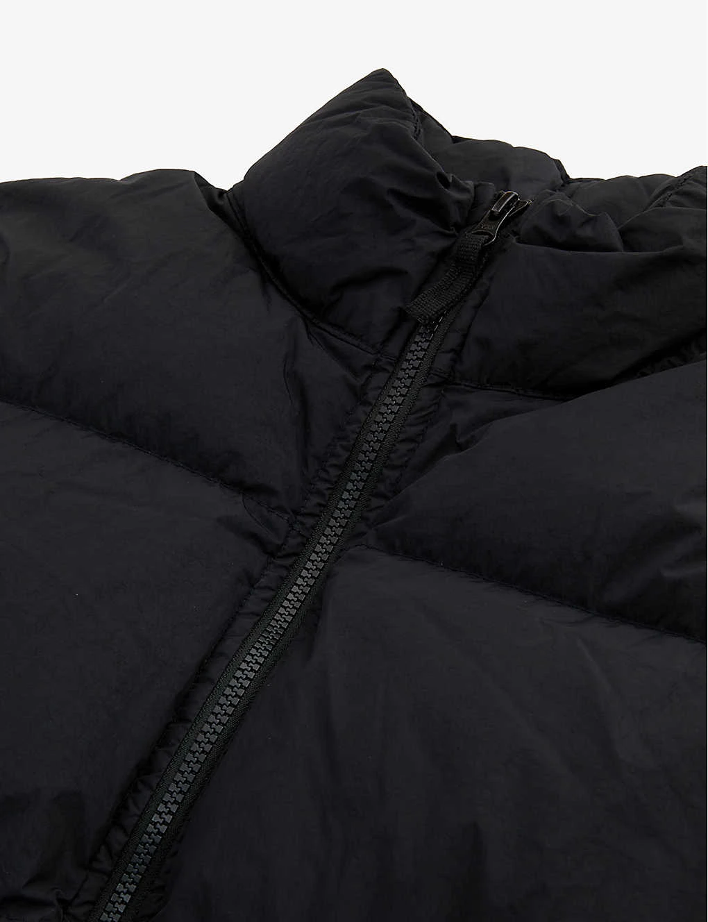 - Regular fit, high neck, long sleeves, detachable brand patch at sleeve, elasticated cuffs, two zip pockets at front, all over quilted and padded, fully lined, elasticated hem