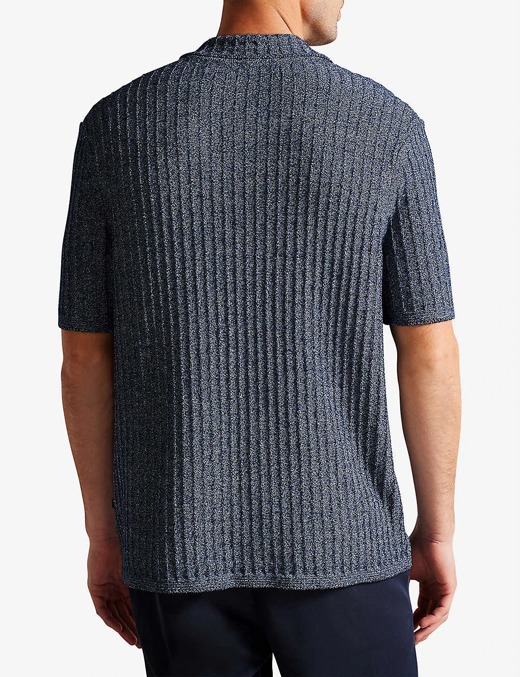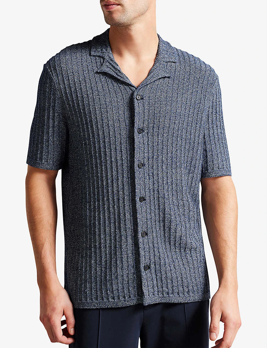 - Relaxed fit, short sleeves, Cuban collar, striped knit