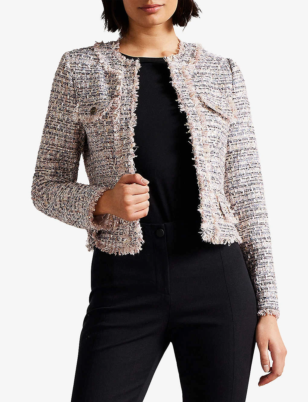 Ted Baker Renata Tweed-effect Fray-detail Woven Boucle Jacket